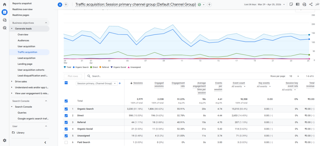 - Traffic sources (Google, social media, direct)