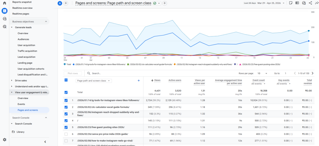 Reports → Engagement → Pages and Screens