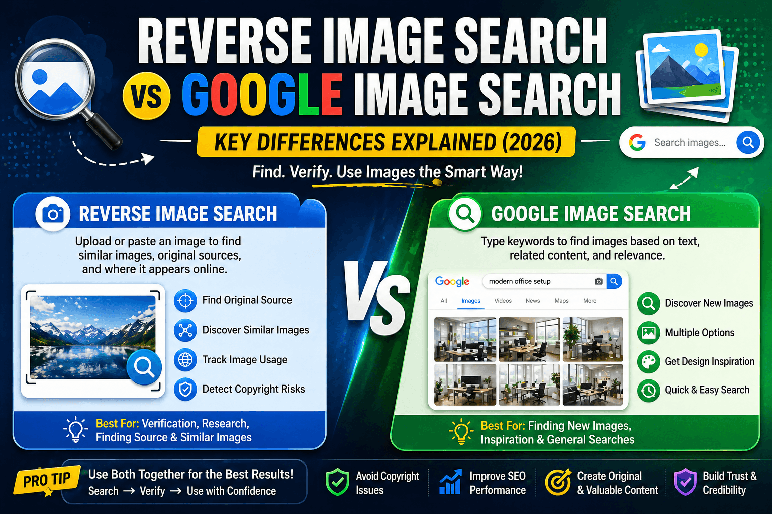 Both are useful. Google search helps discover images, while reverse search helps verify them.
